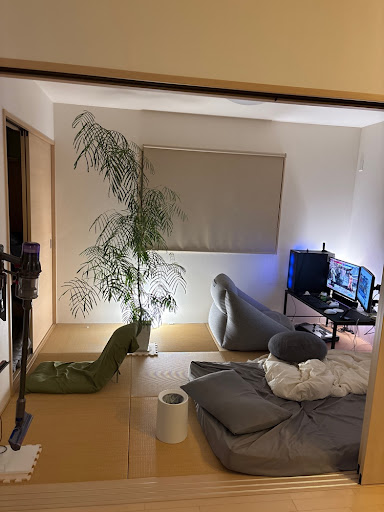 手前にあるのは折り畳みマットレス。いつもそこで寝ています(´・ω・`)