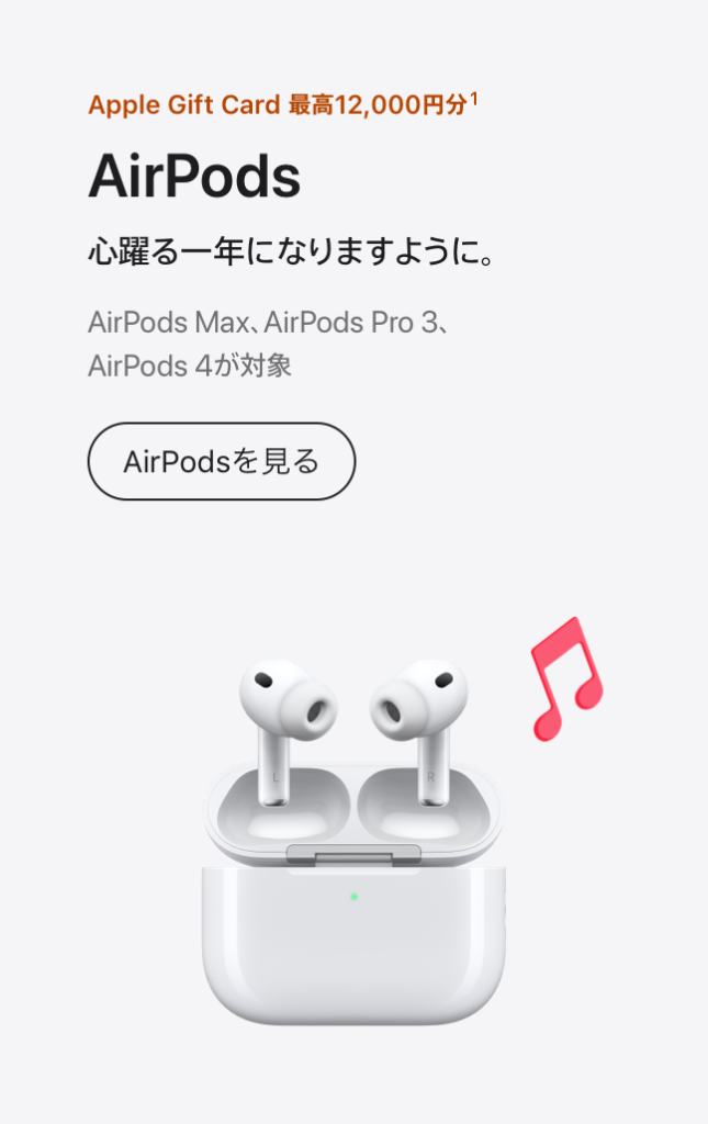 iPhoneは「ギフトカード」と「限定AirTag」のダブル特典が魅力です。